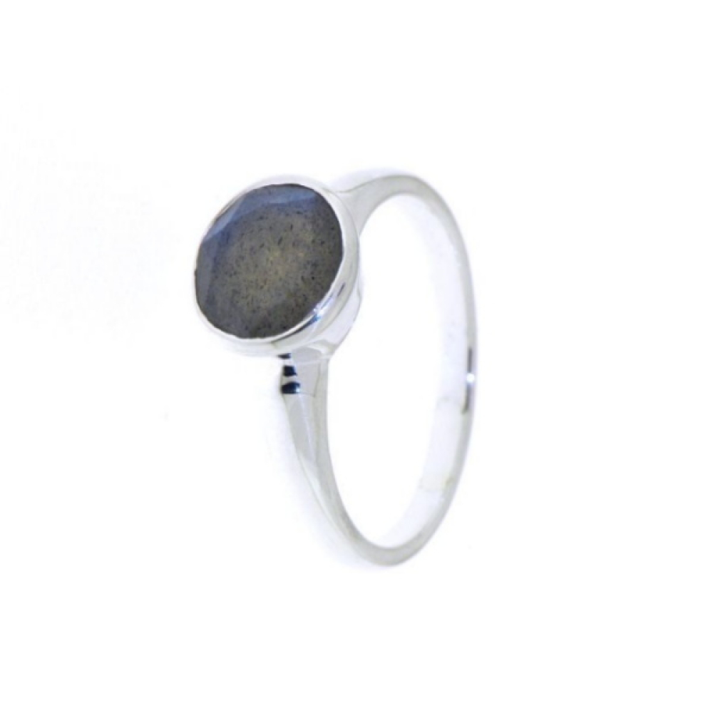 De zilveren ring heeft een facet geslepen edelsteen. De vorm van de edelsteen is rond met een afmeting van 9 mm.