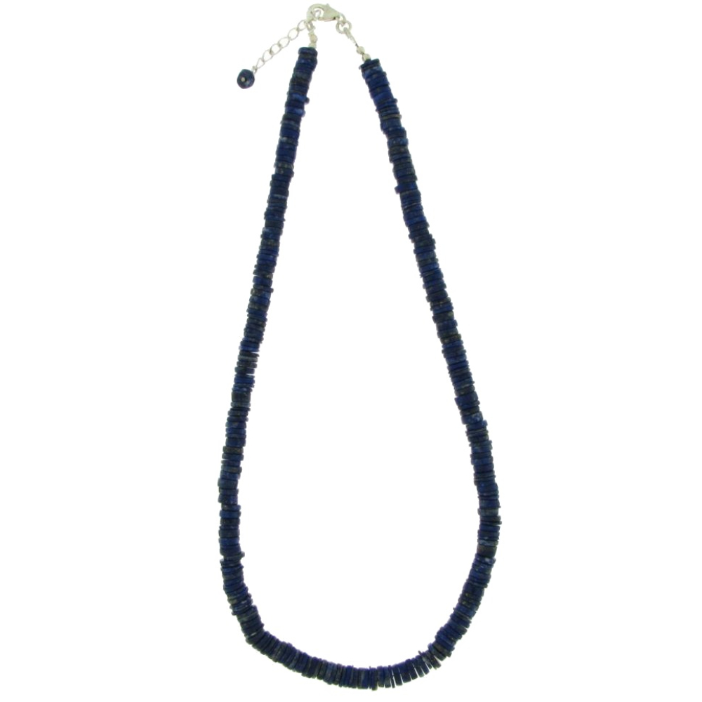 Het collier heeft cabouchon rond geslepen edelstenen. Het collier heeft een lengte van 44 cm met een verlengstuk van 4 cm.