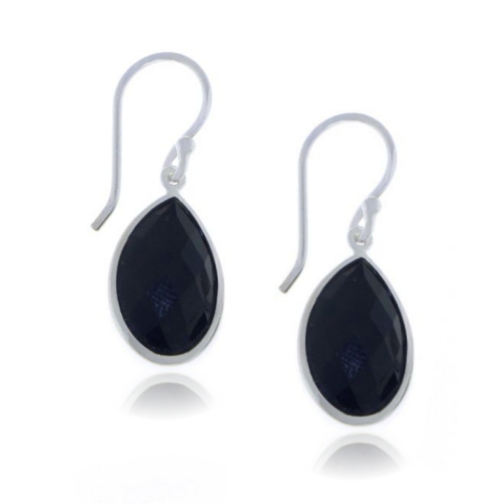 De zilveren oorhangers hebben facet geslepen edelstenen. De vorm van de edelstenen zijn druppelvormig met een afmeting van 16 x 10 mm.