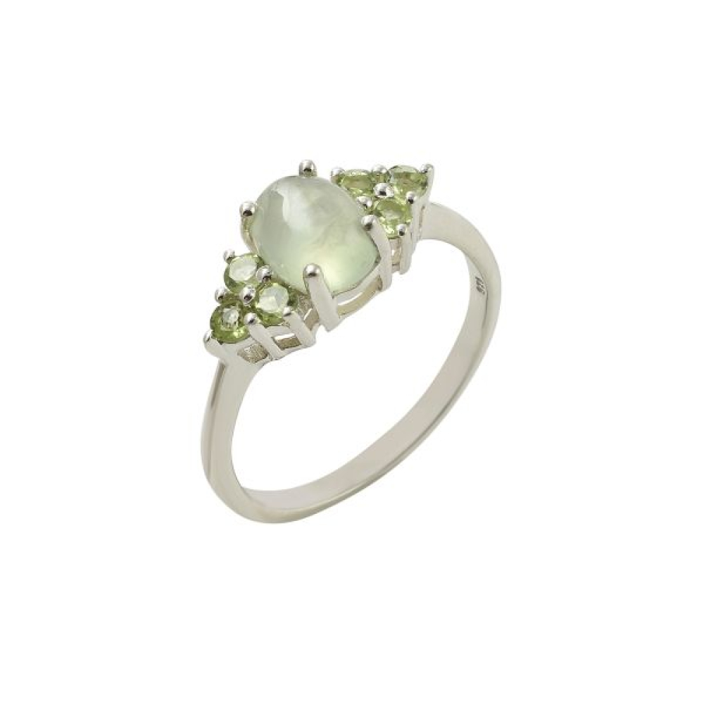 De zilveren ring heeft een cabouchon geslepen edelsteen. De vorm van de edelsteen is ovaal met een afmeting van 8 x 6 mm.