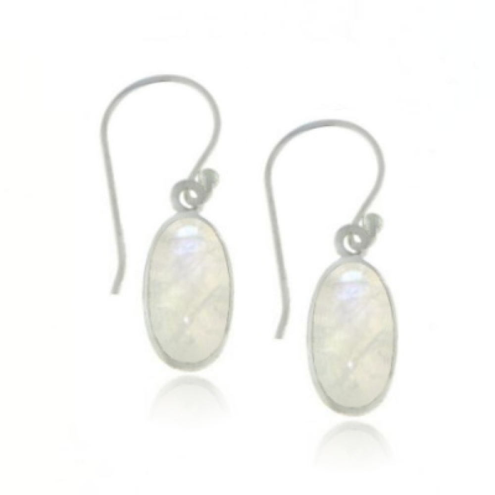 De zilveren oorhanger heeft een cabouchon geslepen edelsteen. De vorm van de edelsteen is ovaal met een afmeting van 14 x 8 mm.