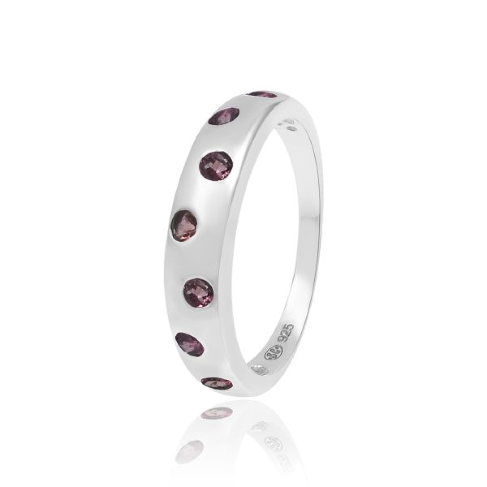 De zilveren ring heeft een facet geslepen edelstenen. De vorm van de edelsteen zijnrond met een afmeting van 2 mm.