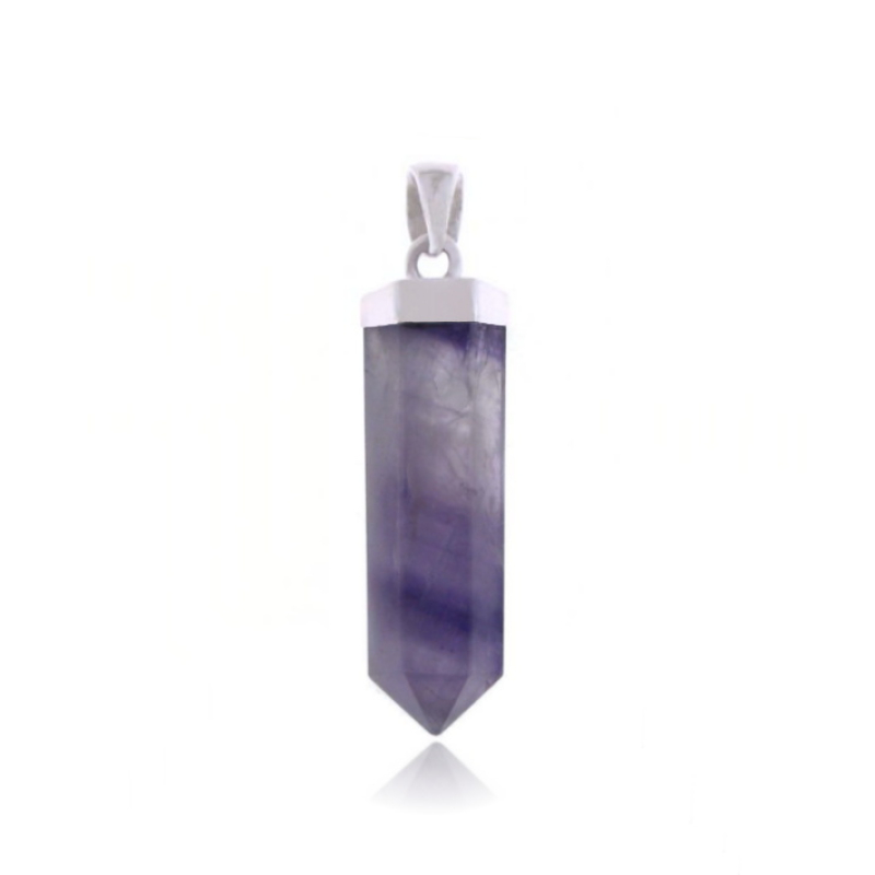 De zilveren hanger heeft een geslepen edelsteen. De vorm van de edelsteen is langwerpig met een lengte van 3 cm.