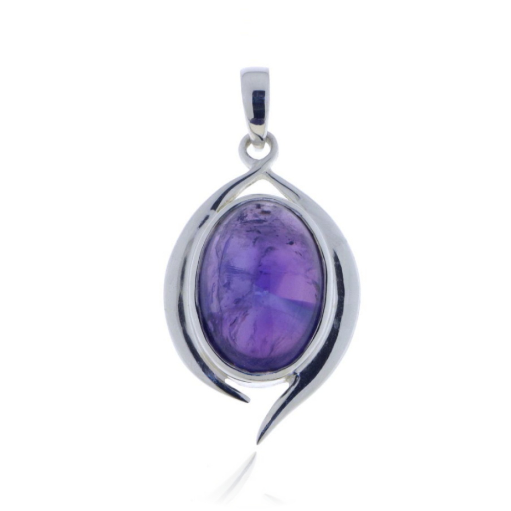 De zilveren hanger heeft een cabouchon geslepen edelsteen. De vorm van de edelsteen is ovaal met afmeting 18 bij 13 mm.