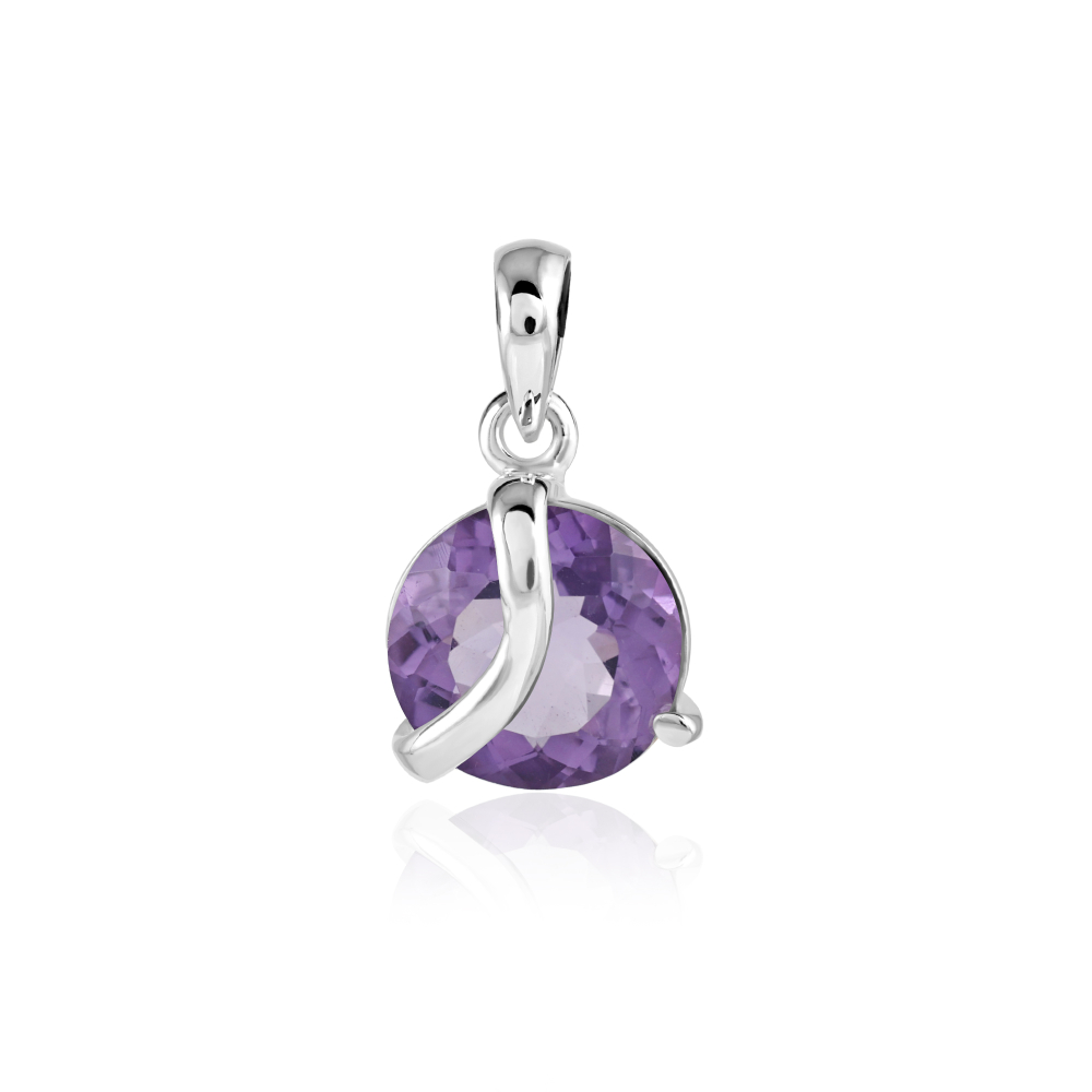 De zilveren hanger heeft een facet geslepen edelsteen. De vorm van de edelsteen is rond met een afmeting van 12 mm.