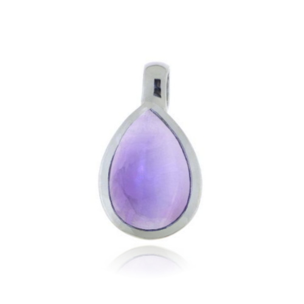 De zilveren hanger heeft een cabouchon geslepen edelsteen. De edelsteen is druppelvormig met afmetingen 12 x 8 mm.