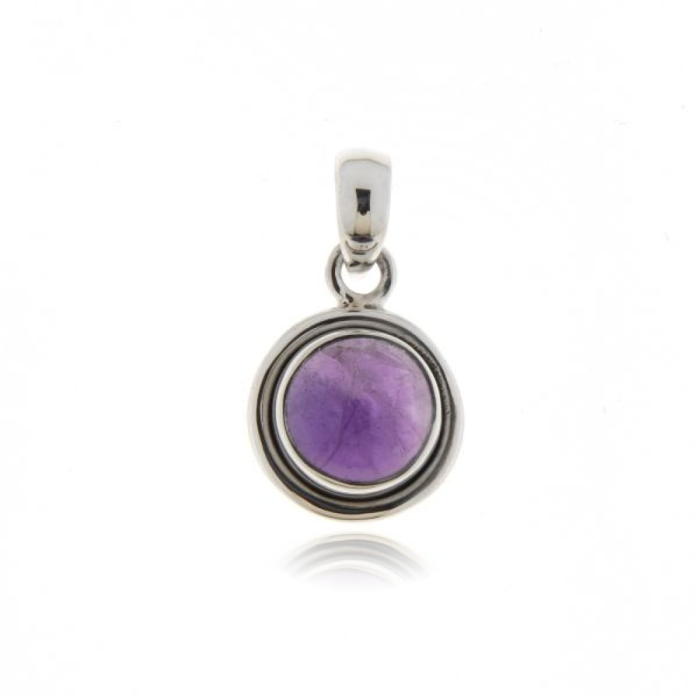 De zilveren hanger heeft een cabouchon geslepen edelsteen. De vorm van de edelsteen is rond met afmeting van 9 mm.