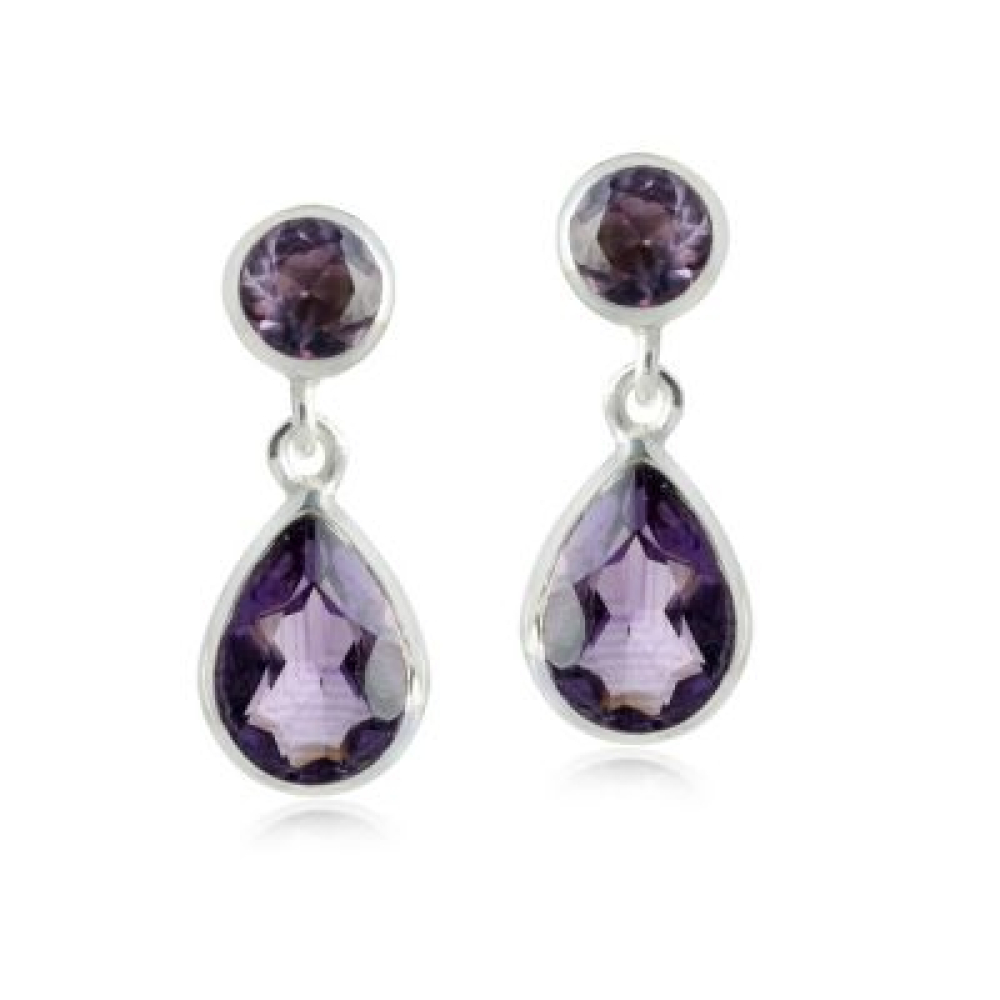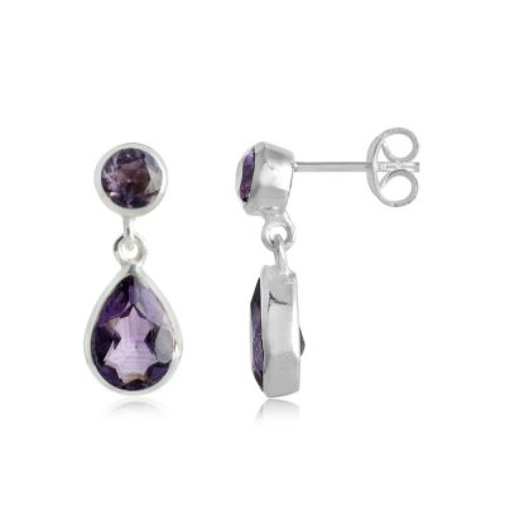 De zilveren oorsteker heeft facet geslepen edelstenen. De vorm van de edelstenen zijn rond en druppel vormig met een afmeting van 5 mm en 9 x 7 mm.
