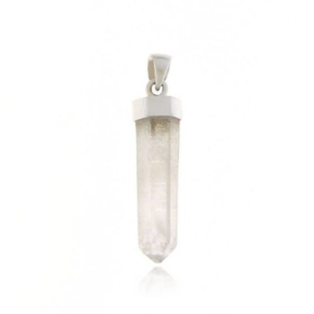 De zilveren hanger heeft een geslepen edelsteen. De vorm van de edelsteen is langwerpig met een lengte van 3 cm.