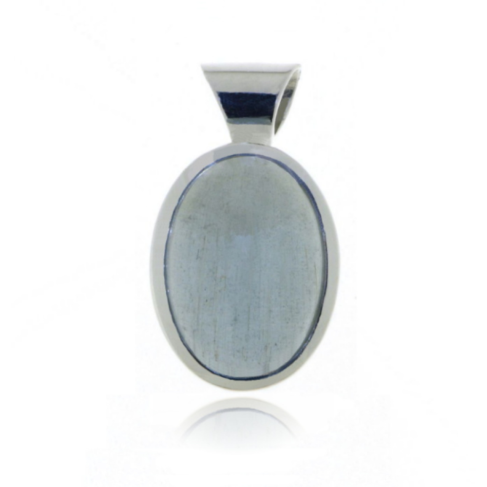 De zilveren hanger heeft een cabouchon geslepen edelsteen. De vorm van de edelsteen is ovaal met een afmeting van 14 bij 10 mm.