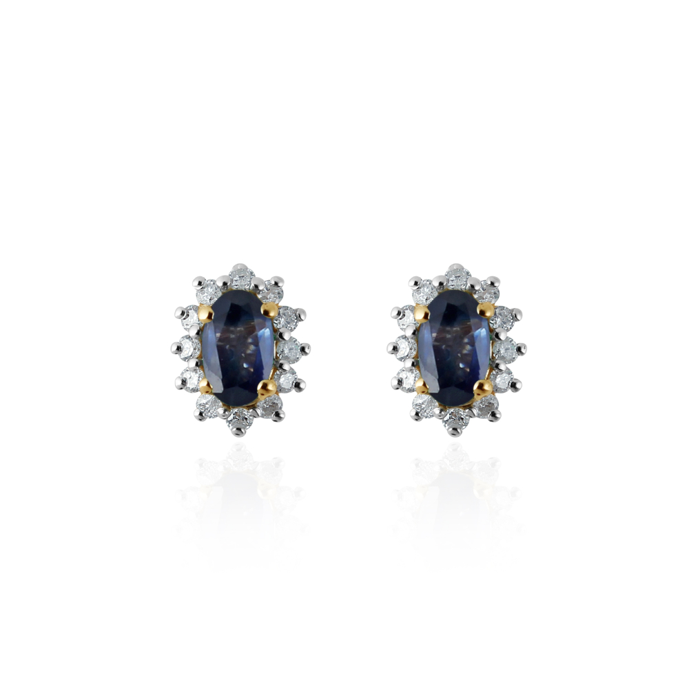 Blauwe Saffier met diamant Oorstekers model E011732
