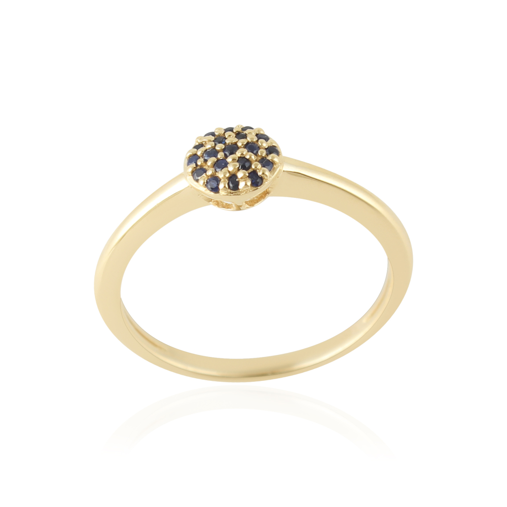 De 14 karaat gouden ring heeft facet geslepen edelstenen. De vorm van de edestenen zijn rond met een afmeting van 1 mm.