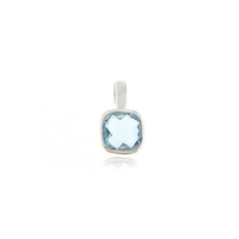 De zilveren hanger heeft een facet geslepen edelsteen. De vorm van de edelsteen is vierkant met afmeting van 7 mm.