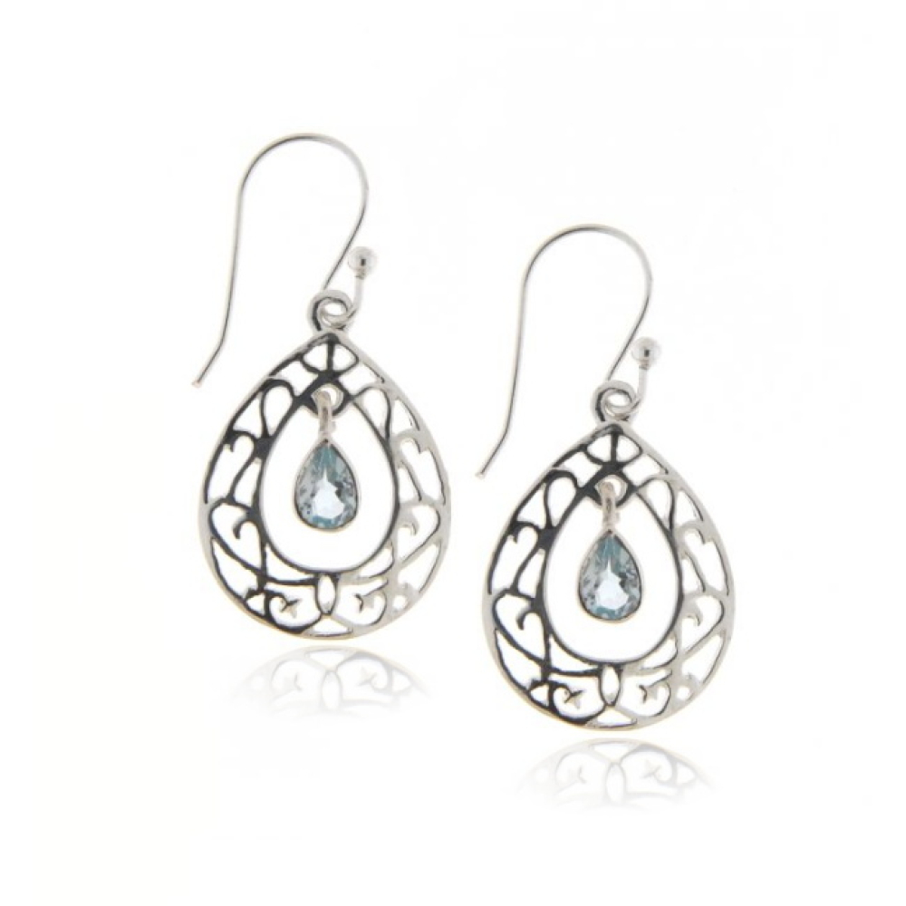 De zilveren oorhangers hebben facet geslepen edelstenen. De edelstenen zijn druppel vormig met een afmeting van 7 x 5 mm.