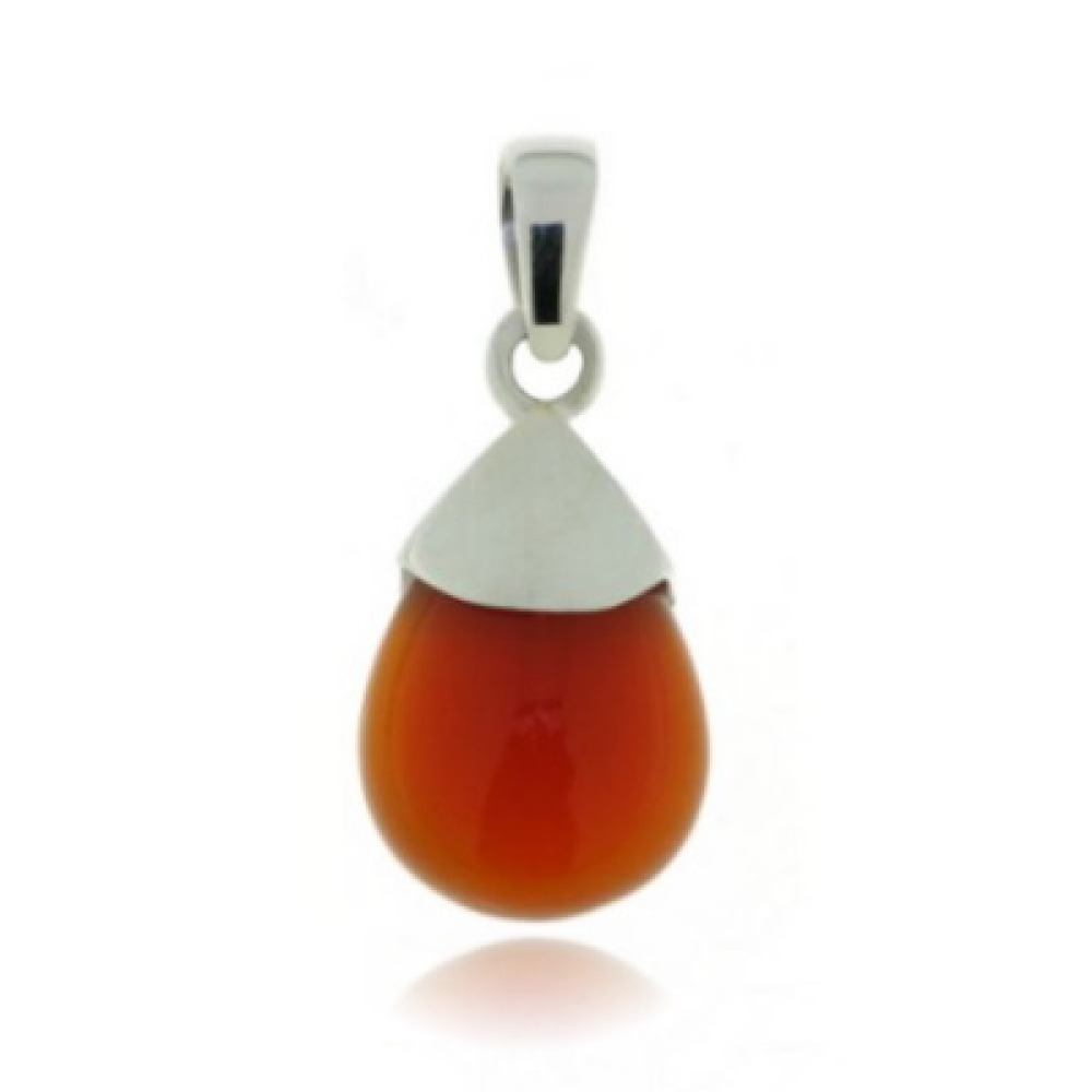 De zilveren hanger heeft een cabouchon geslepen edelsteen. De vorm van de edelsteen is druppelvormig met een afmeting van 16 bij 12 mm.