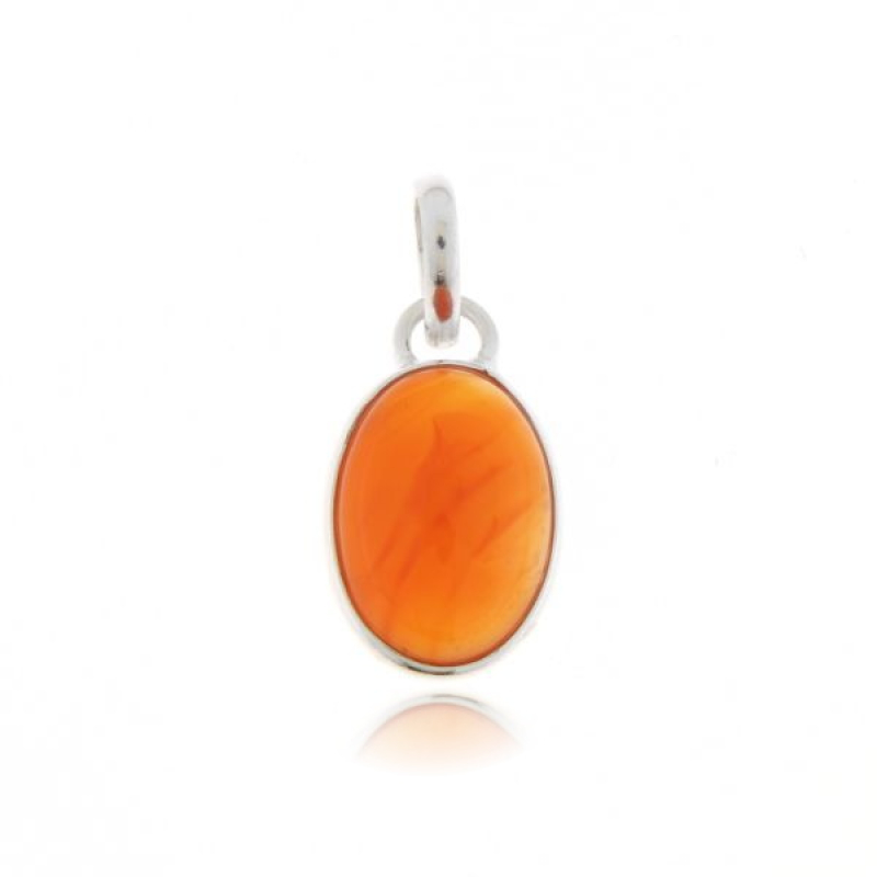 De zilveren hanger heeft een cabouchon geslepen edelsteen. De vorm van de edelsteen is ovaal met een afmeting van 14 bij 10 mm.