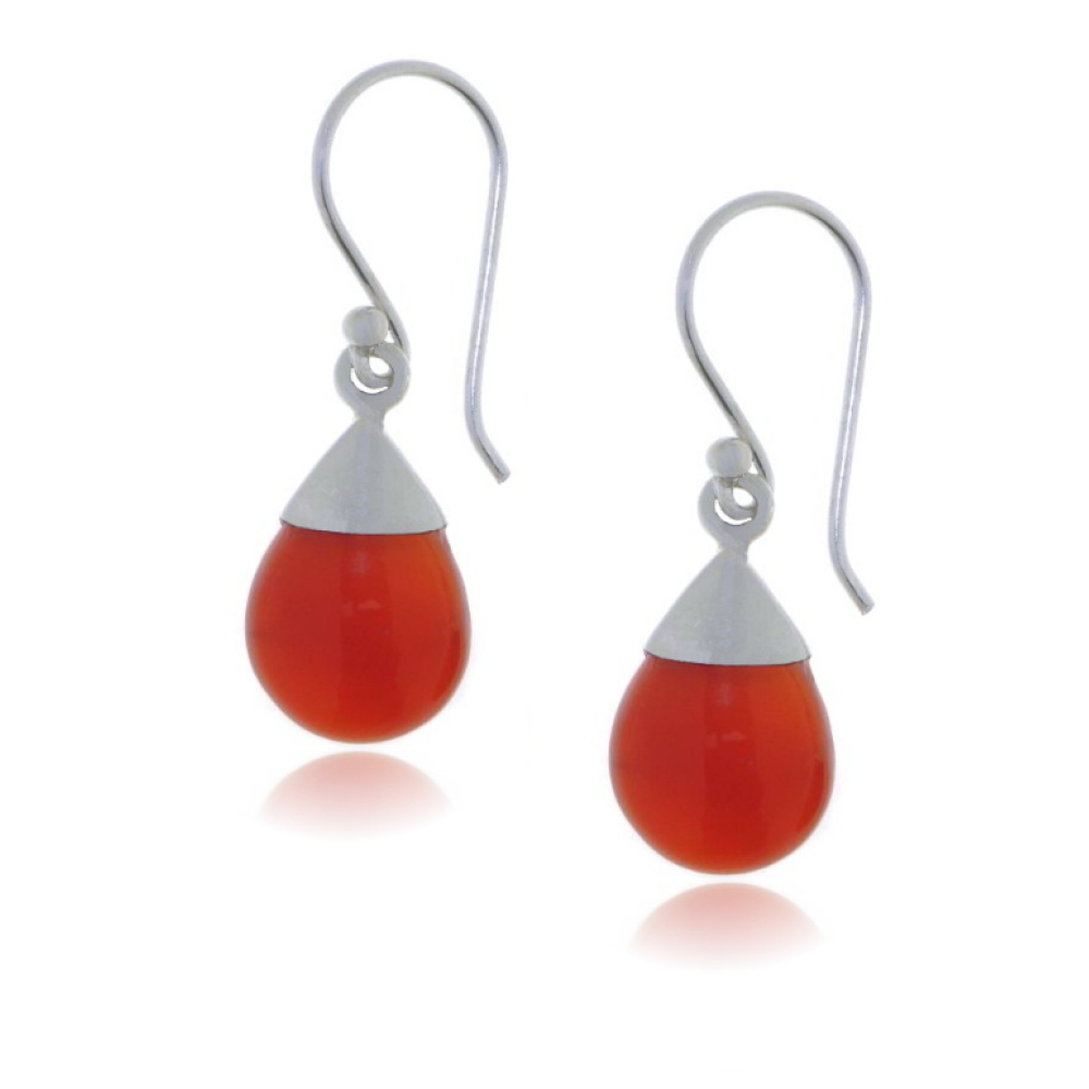 De zilveren oorhanger heeft een cabouchon geslepen edelsteen. De vorm van de edelsteen is druppelvormig met afmeting 14 bij 10 mm.