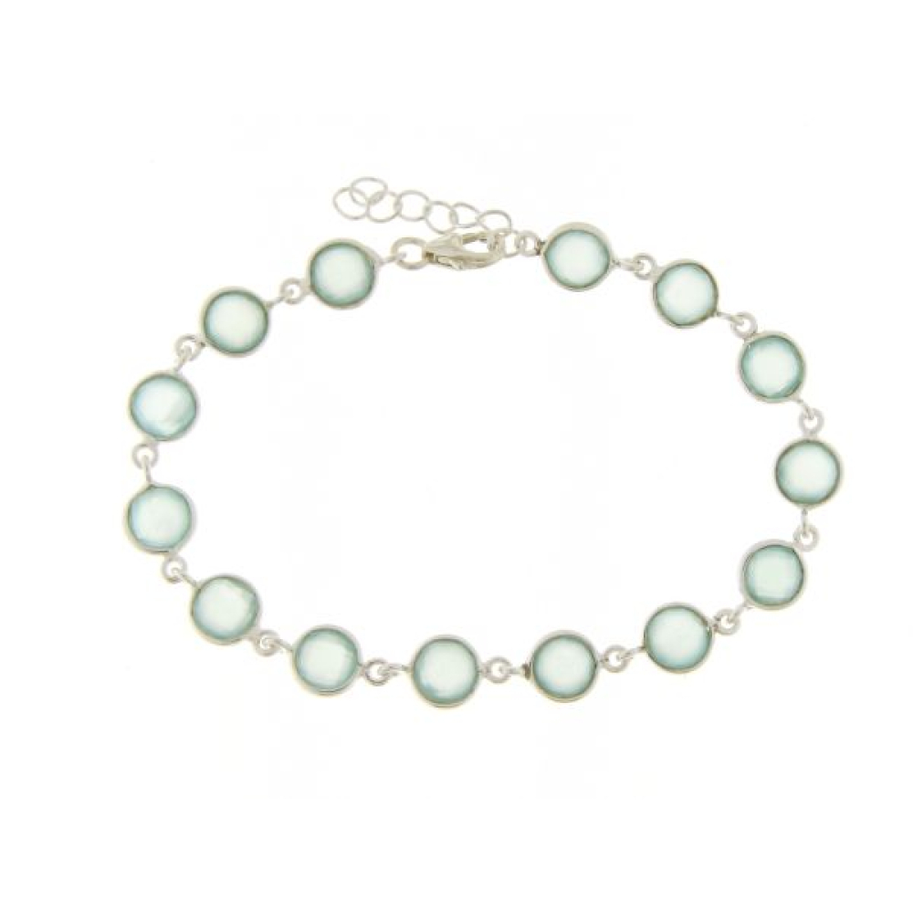 De zilveren armband heeft facet geslepen edelstenen. De edelstenen zijn rond met een afmeting van 6 mm. De lengte van de armband is 16,5 cm en heeft een verlengstukje van 2 cm.
