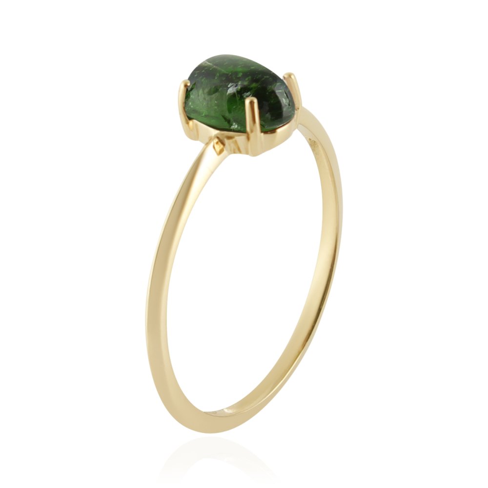De 14 karaat gouden ring heeft een cabouchon geslepen edelsteen. De vorm van de edesteen is ovaal met een afmeting van 7 x 5 mm.