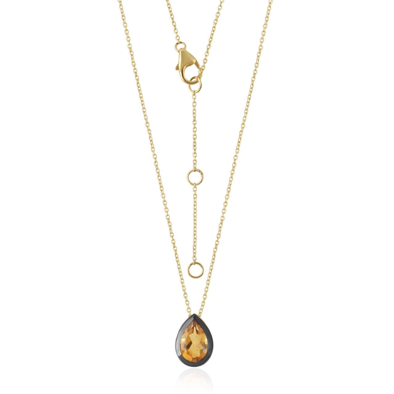 De 9 karaat gouden collier heeft een facet geslepen edelsteen. De edelsteen is druppelvormig met een afmeting van 8 x 6 mm. Het collier heeft een verlengstuk en kan gesloten worden op een lengte van 38, 40 of 42 cm.