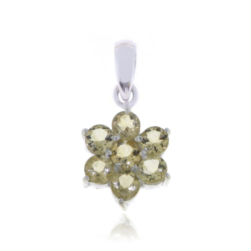 De zilveren hanger heeft facet geslepen edelstenen. De vorm van de edelstenen zijn rond met een afmeting van 3 mm.