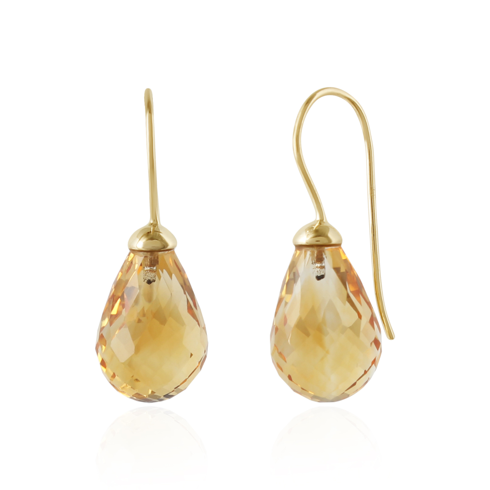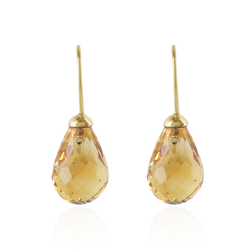 De 14 karaat gouden oorhangers hebben briolette geslepen edelstenen. De vorm van de edestenen zijn druppel vormig met een afmeting van 15 x 10 mm.