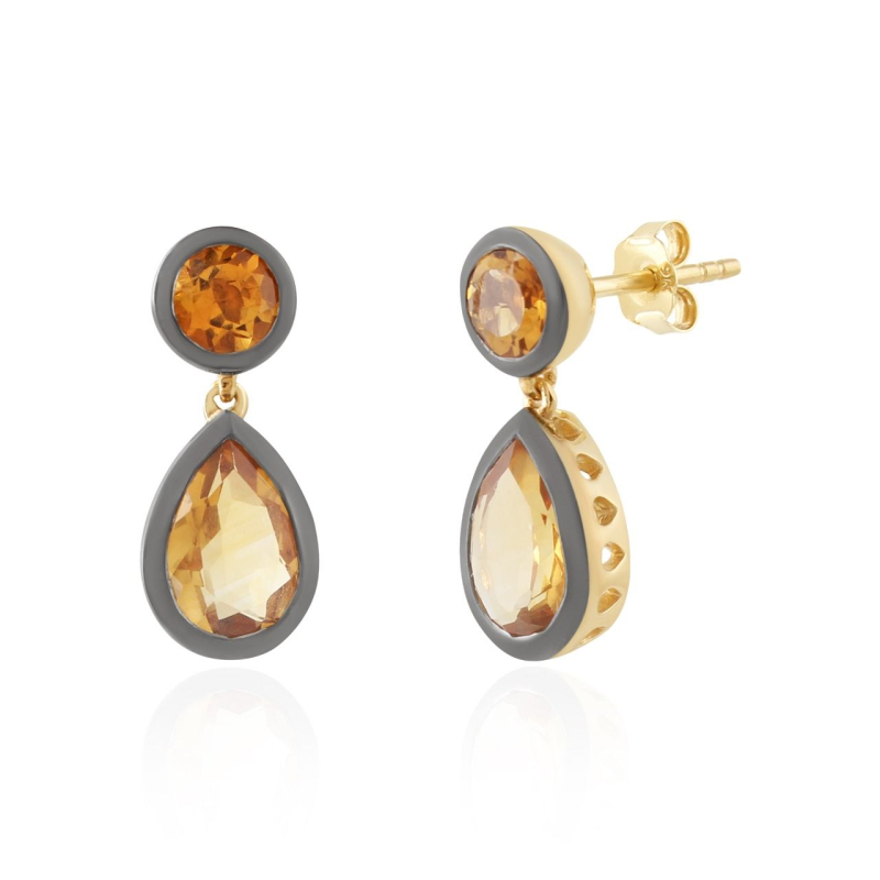 De 9 karaat gouden oorstekers hebben facet geslepen edelstenen. De vorm van de edesteen is rond met een afmeting van 5 mm en druppelvormig met een afmeting van 8 x 6 mm.
