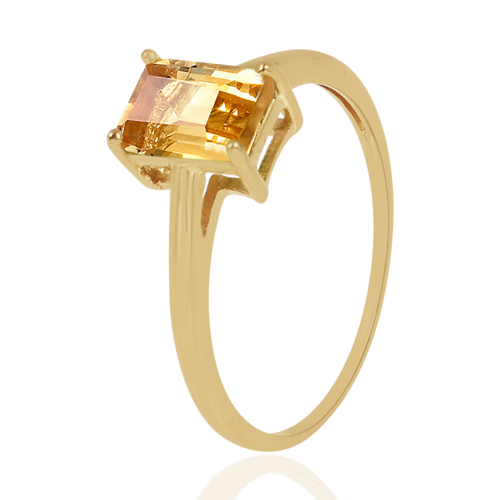 De 14 karaat gouden ring heeft een facet geslepen edelsteen. De vorm van de edestenen is rechthoekig met een afmeting van 7 x 5 mm.