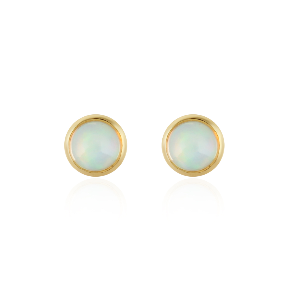 De 14 karaat gouden oorstekers hebben cabouchon geslepen edelstenen. De vorm van de edestenen zijn rond met een afmeting van 5 mm.