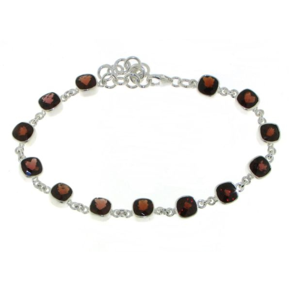 De zilveren armband heeft facet geslepen edelstenen. De edelstenen zijn vierkant en de afmeting is 7 mm. e armband heeft een verlengstuk van 3 cm en kan gesloten worden op een lengte van 17, 18 of 19 cm.