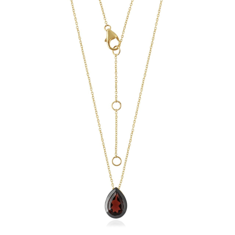 De 9 karaat gouden collier heeft een facet geslepen edelsteen. De edelsteen is druppelvormig met een afmeting van 8 x 6 mm. Het collier heeft een verlengstuk en kan gesloten worden op een lengte van 38, 40 of 42 cm.