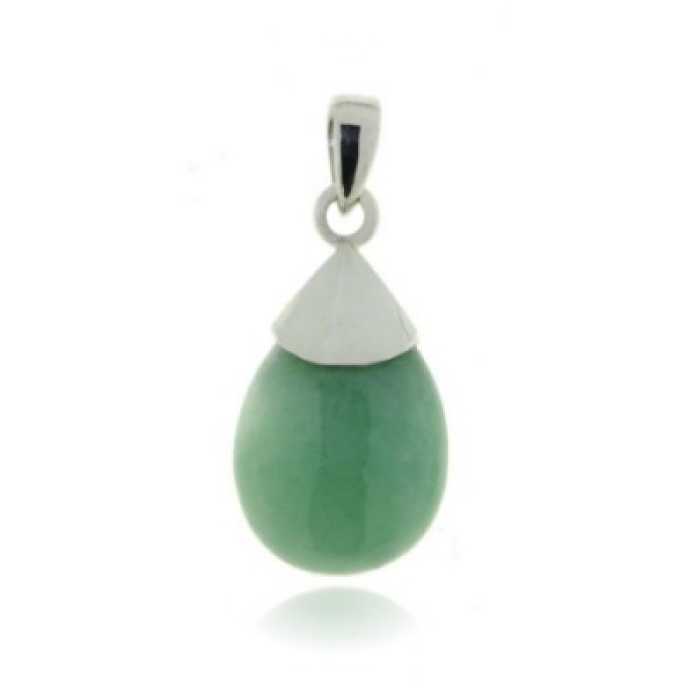 De zilveren hanger heeft een cabouchon geslepen edelsteen. De vorm van de edelsteen is druppelvormig met een afmeting van 16 bij 12 mm.