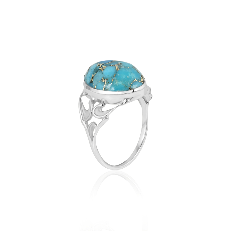 De ring heeft een cabouchon geslepen edelsteen. De vorm van de edelsteen is ovaal met een afmeting van 14 x 10 mm.