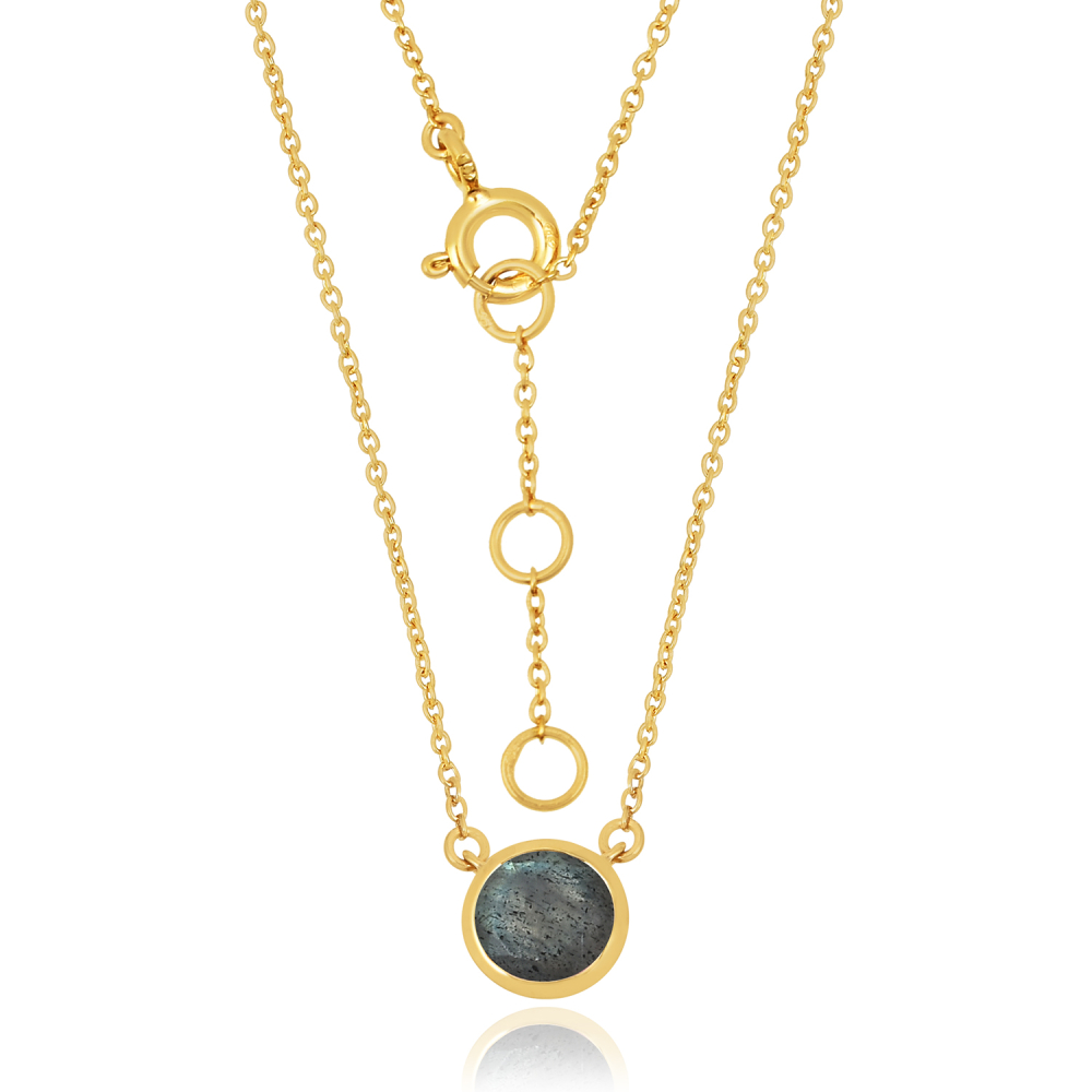 De 14 karaat gouden collier heeft een facet geslepen edelsteen. De vorm van de edelsteen is rond met een afmeting van 6 mm. Het collier heeft een verlengstuk van 2 cm en kan gesloten worden op een lengte van 42, 43 of 44 cm.