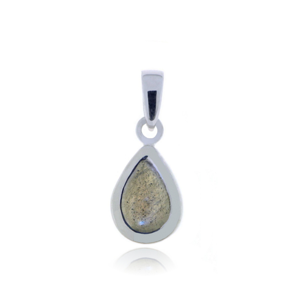 De hanger heeft een cabouchon geslepen edelsteen. De vorm van de edelsteen is druppelvormig met een afmeting van 22 bij 16 mm.