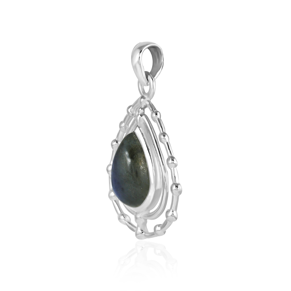 De zilveren hanger heeft een cabouchon geslepen edelsteen. De edelsteen is druppelvormig met een afmeting van 14 bij 10 mm.