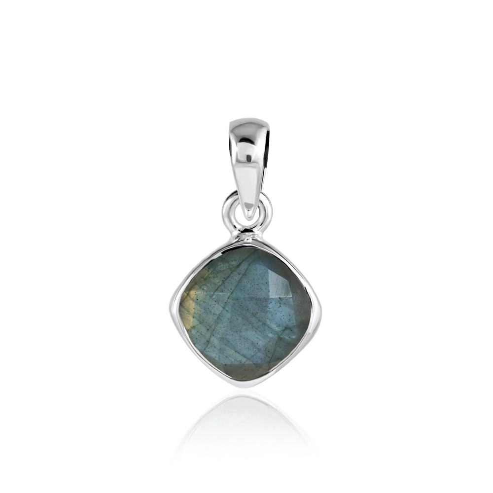 De zilveren hanger heeft een facet geslepen edelsteen. De vorm van de edelsteen is vierkant met afmeting van 10 x 10 mm.