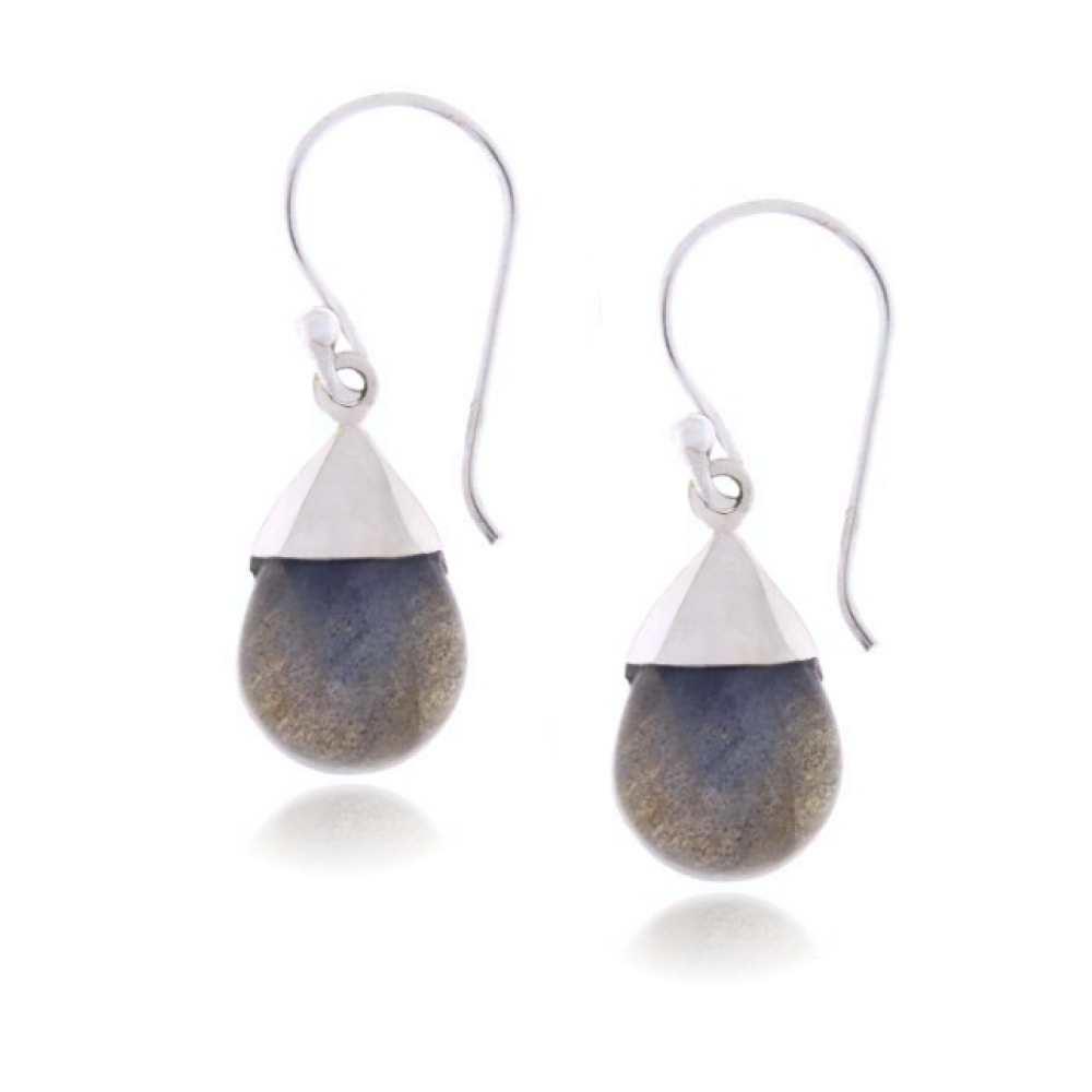 De zilveren oorhanger heeft een cabouchon geslepen edelsteen. De vorm van de edelsteen is druppelvormig met afmeting 14 bij 10 mm.