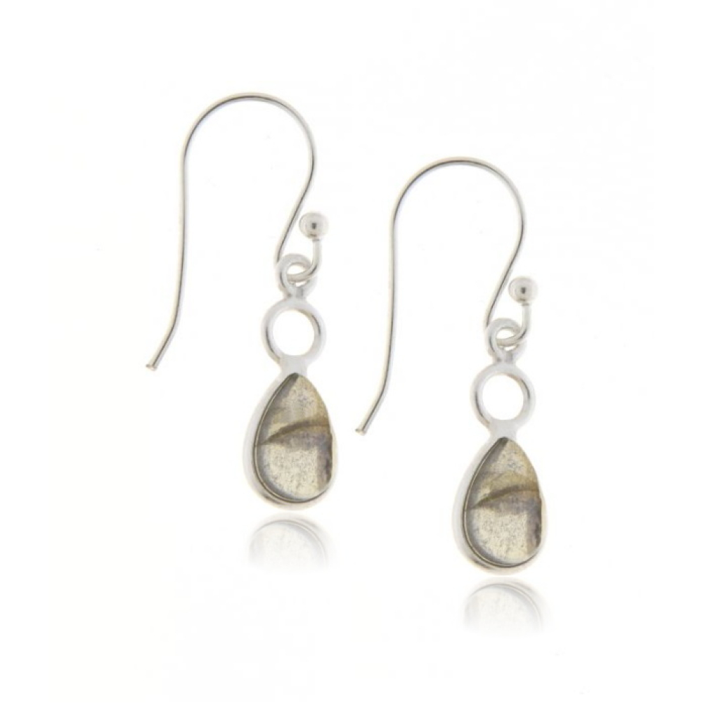 De zilveren oorhanger heeft cabouchon geslepen edelstenen. De edelstenen zijn druppel vormig met een afmeting van 10 x 7 mm.