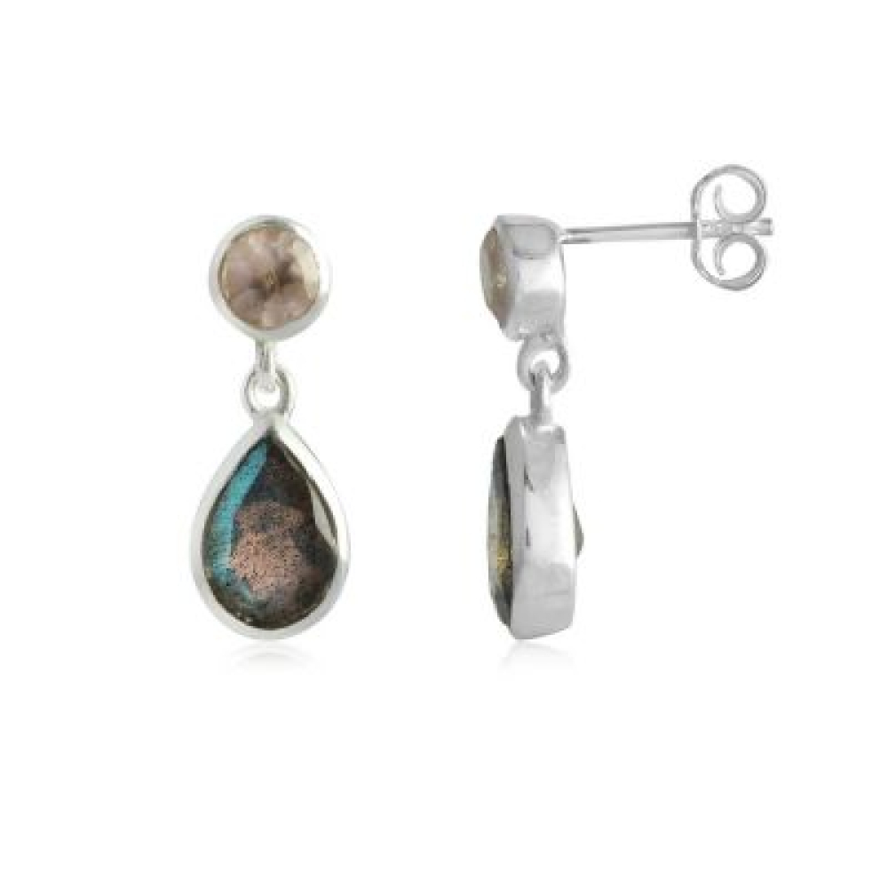 De zilveren oorsteker heeft facet geslepen edelstenen. De vorm van de edelstenen zijn rond en druppel vormig met een afmeting van 5 mm en 9 x 7 mm.