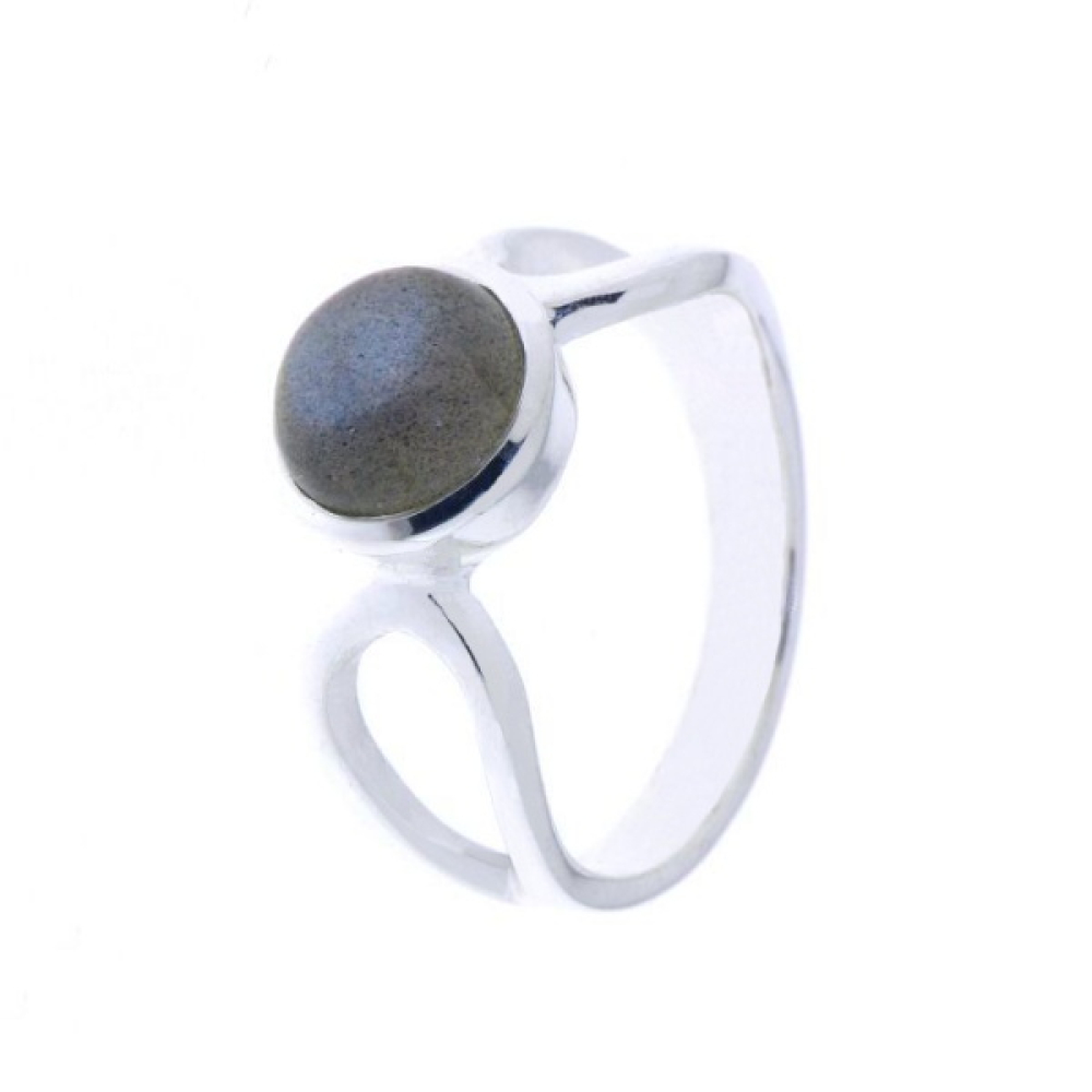 De zilveren ring heeft een cabouchon geslepen edelsteen. De vorm van de edelsteen is rond met een afmeting van 8 mm.