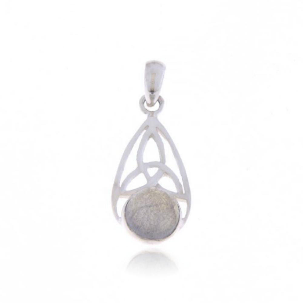 De zilveren hanger heeft een cabouchon geslepen edelsteen. De vorm van de edelsteen is rond en heeft een afmeting van 8 mm.