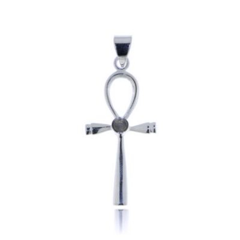 De zilveren ankh hanger heeft een cabouchon geslepen edelsteen. De vorm van de edelsteen is rond met een afmeting van 3 mm.