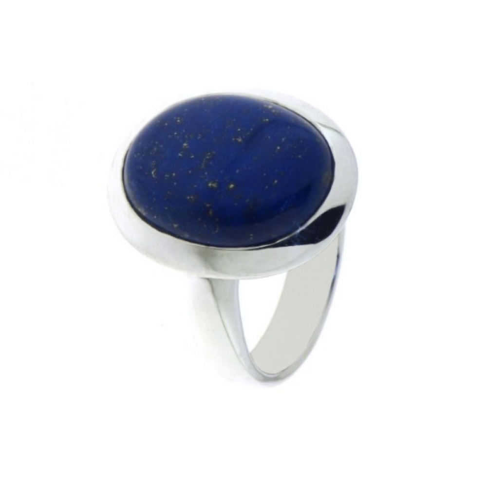 De zilveren ring heeft een cabouchon geslepen edelsteen. De vorm van de edelsteen is ovaal met een afmeting van 16 bij 12 mm.