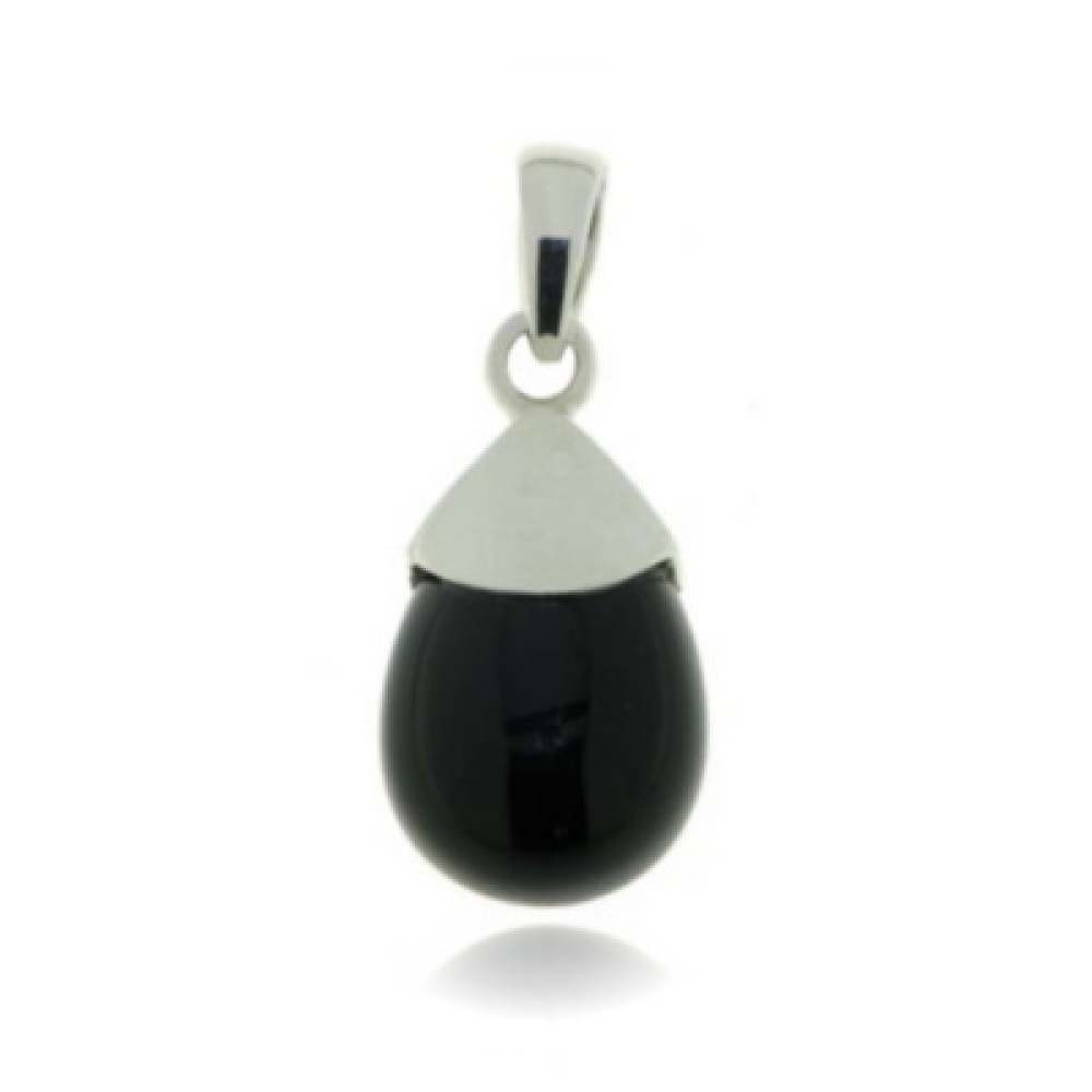 De zilveren hanger heeft een cabouchon geslepen edelsteen. De vorm van de edelsteen is druppelvormig met een afmeting van 16 bij 12 mm.