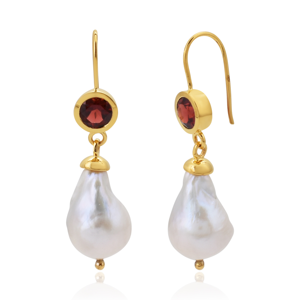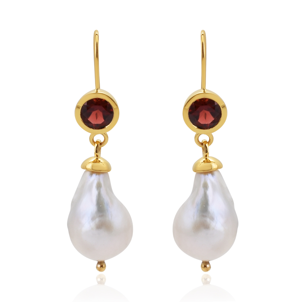 Parel met Granaat Oorhangers model E010187