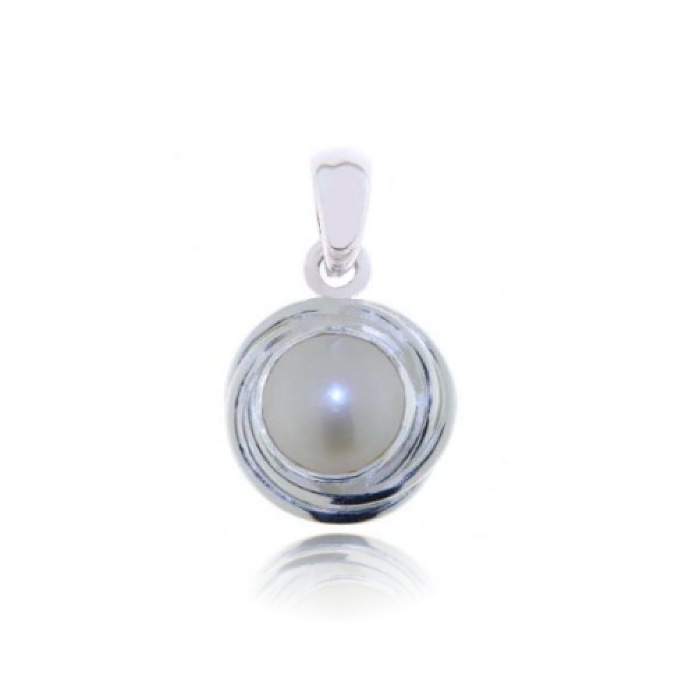 De zilveren hanger heeft een cabouchon geslepen edelsteen. De vorm van de edelsteen is rond met afmeting van 8 mm.