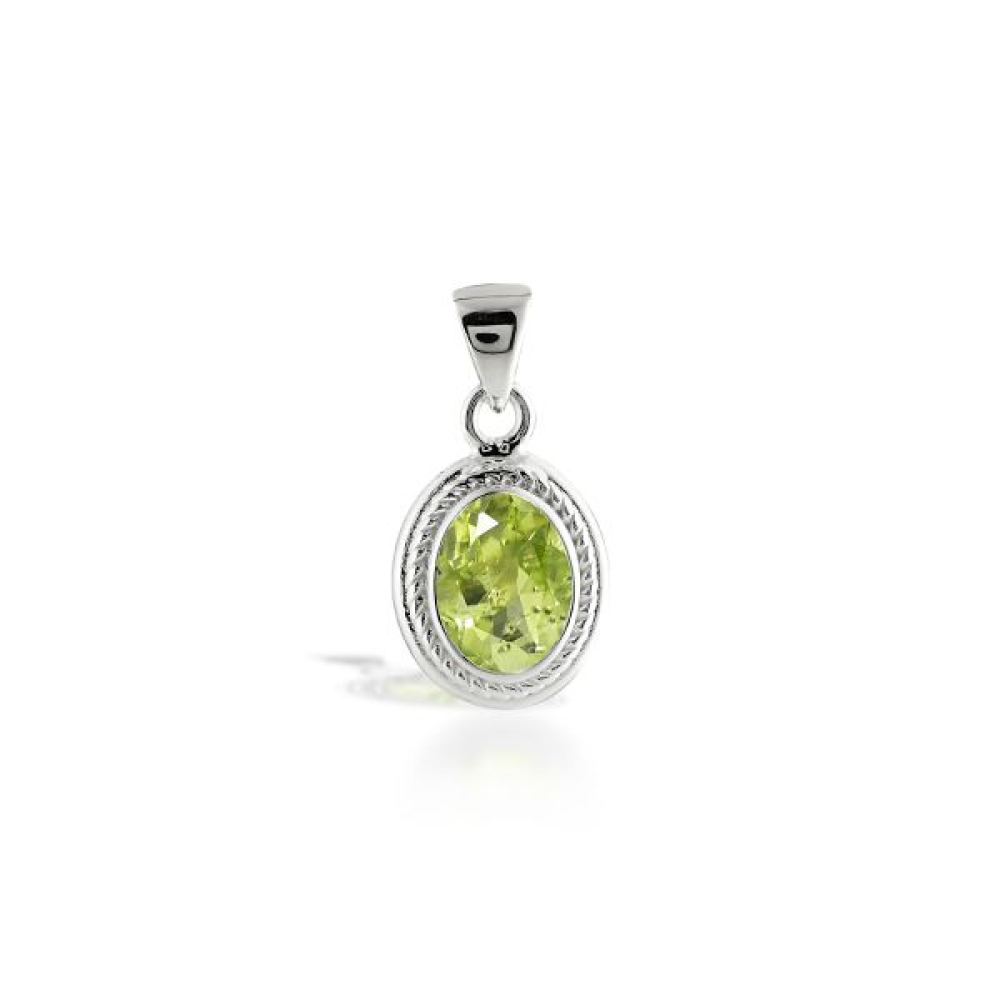 De zilveren hanger heeft een facet geslepen edelsteen. De edelsteen is ovaal met afmetingen 8 x 6 mm.
