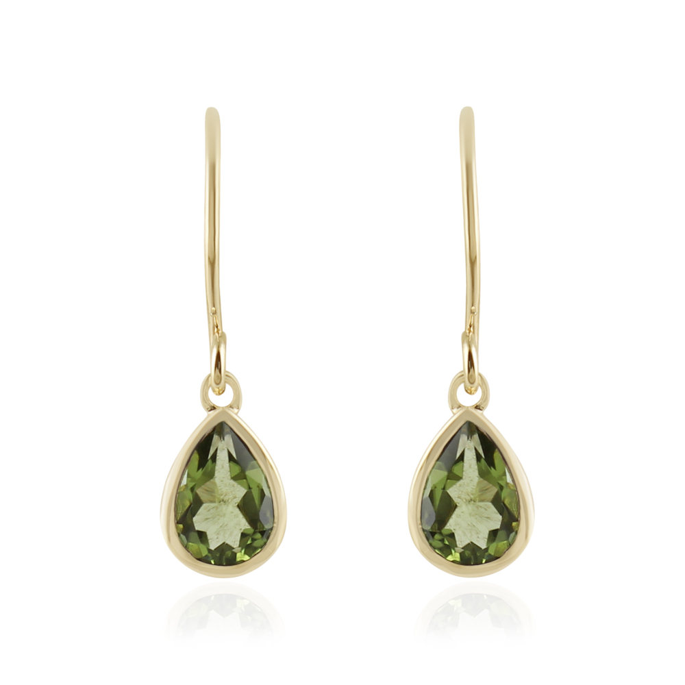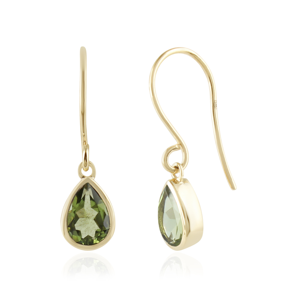 De 14 karaat gouden oorhangers hebben facet geslepen edelstenen. De vorm van de edestenen zijn druppel vormig met een afmeting van 7 x 5 mm.