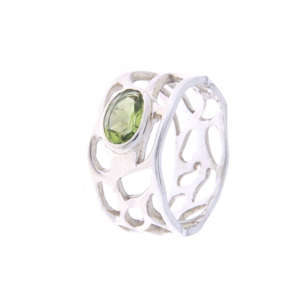 De zilveren ring heeft een facet geslepen edelsteen. De vorm van de edelsteen is ovaal met een afmeting van 7 x 5 mm.